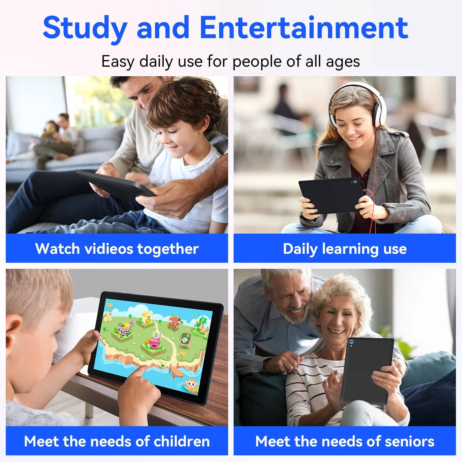 【Latest Android 14 Tablet】Our Android Tablet comes loaded with the "Android 14" operating system. Android 14 Tablet enhances privacy and security and improves the overall experience of using the device through personalization features, the ability to unlock the screen using facial recognition, and control over data accessed by apps. With a highly stable and secure network system, you can browse the web more smoothly and quickly with your Android 14 Tablet.