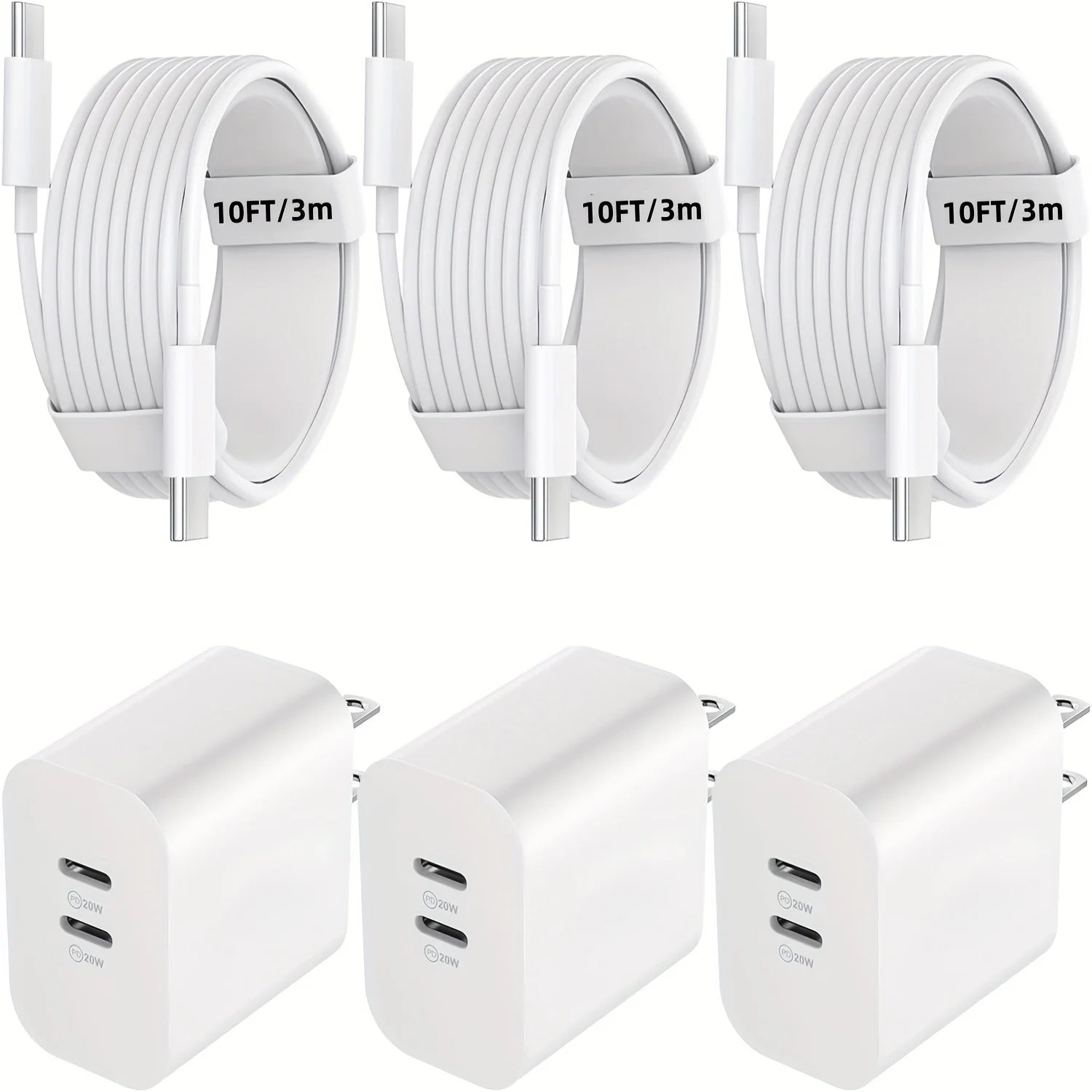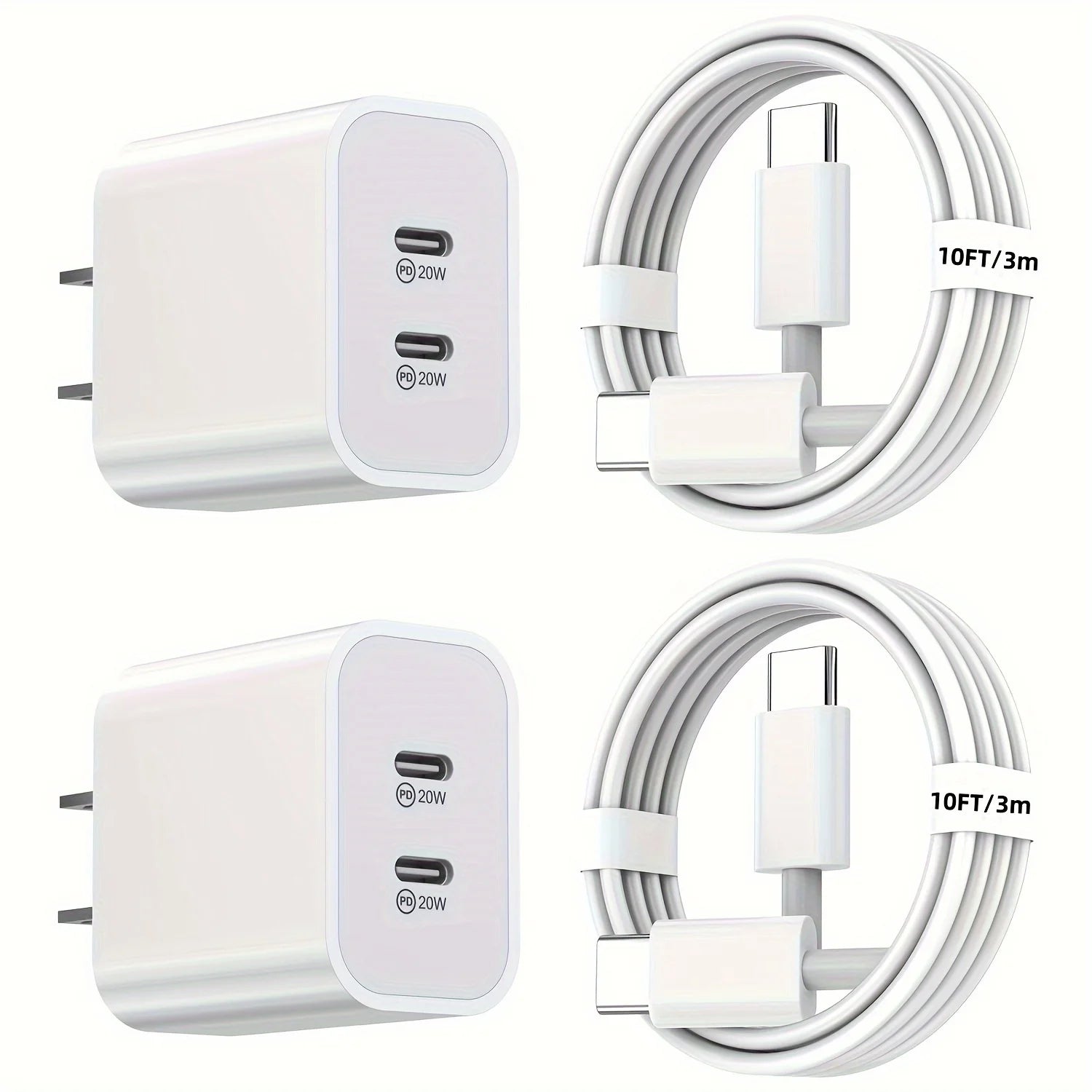 2 Pack 40W USB C Fast Charging Charger Block Cable