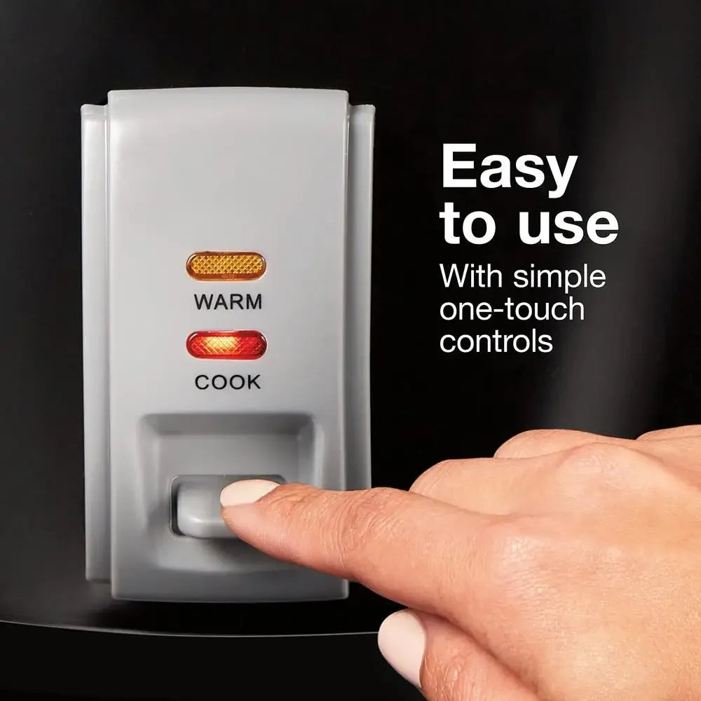 - With one-touch controls, you press a single button to cook rice or steam vegetables, and it automatically switches to warm when done.