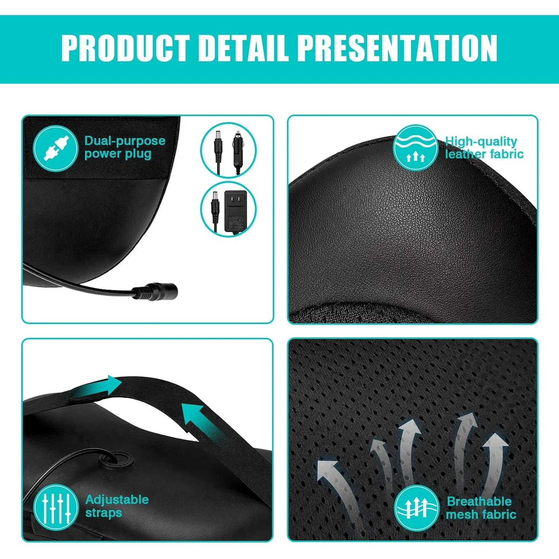- Versatile for car and home use with a rotating massage pillow, magnetic relaxation option, and ergonomic design that contours to your body's curves.