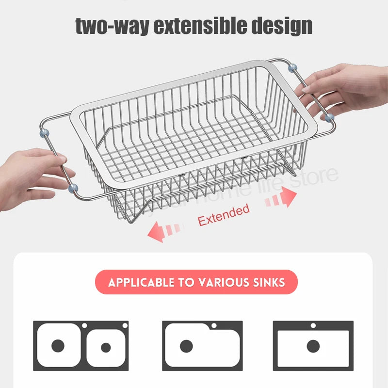 Upgrade your drying routine with an expandable, rustproof over-sink dish rack crafted from 304 stainless steel.