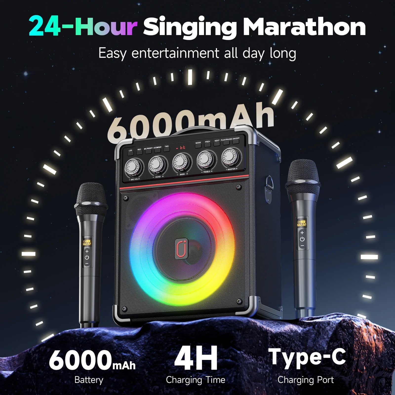 Turn any space into a show with the FanFun Karaoke Machine—your portable party hub with 2 wireless microphones and vibrant RGB lighting.