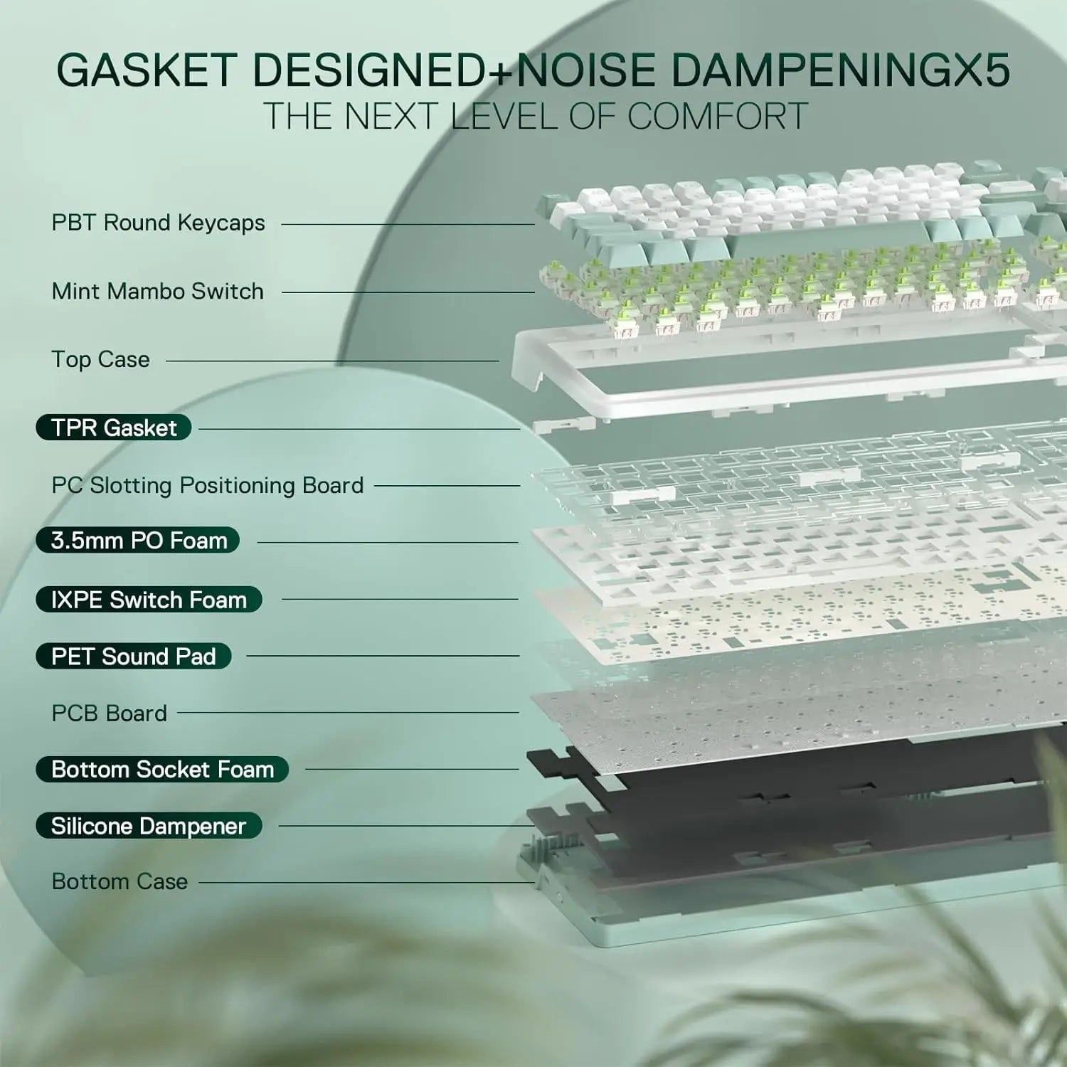 Experience a compact, feature-rich wireless keyboard with a vivid TFT display and Mint Mambo switches that glide with precision and comfort.