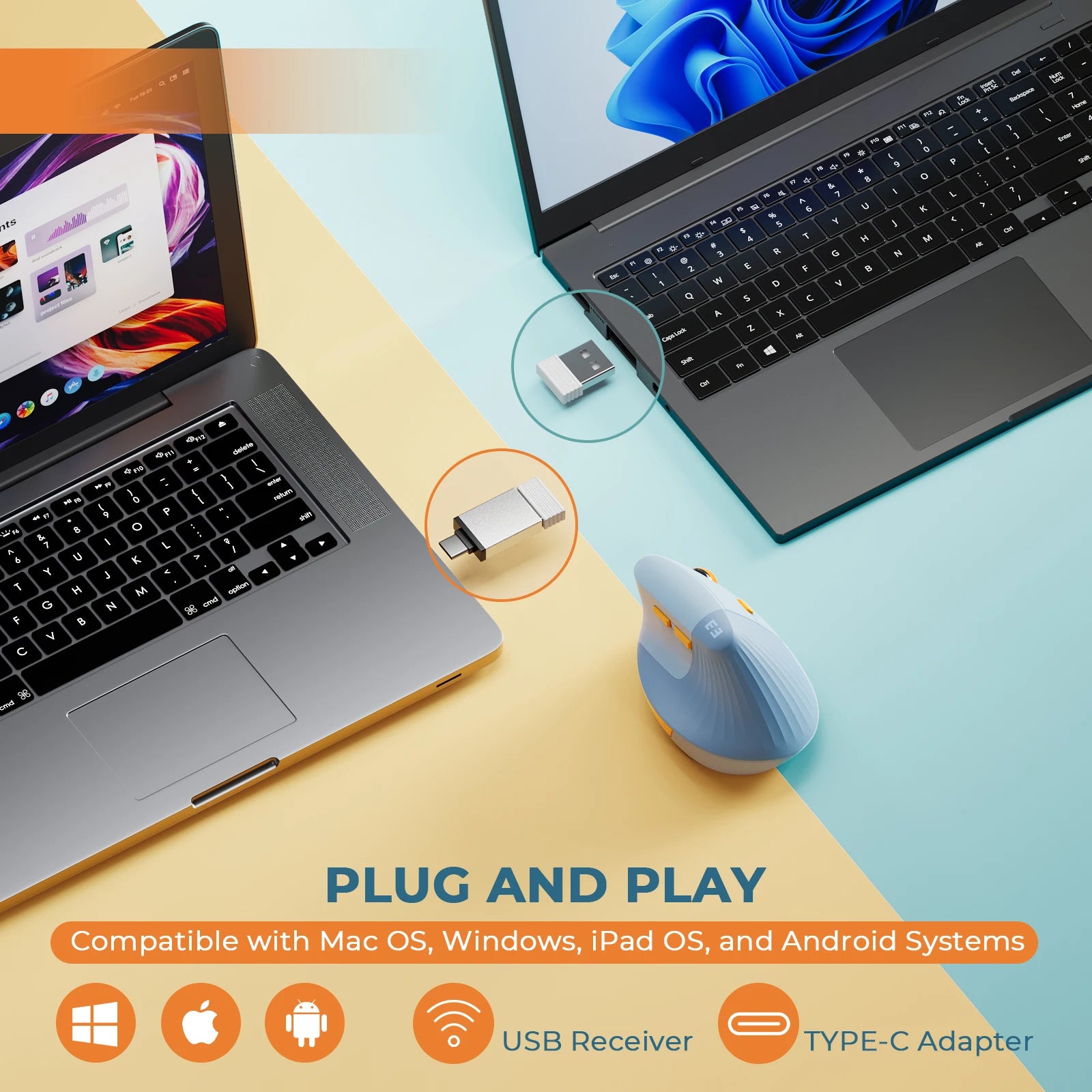 SEENDA Vertical Wireless Mouse Type C Rechargeable Ergonomic USB & Type C Mice for Laptop Laptop PC MacBook Windows Android