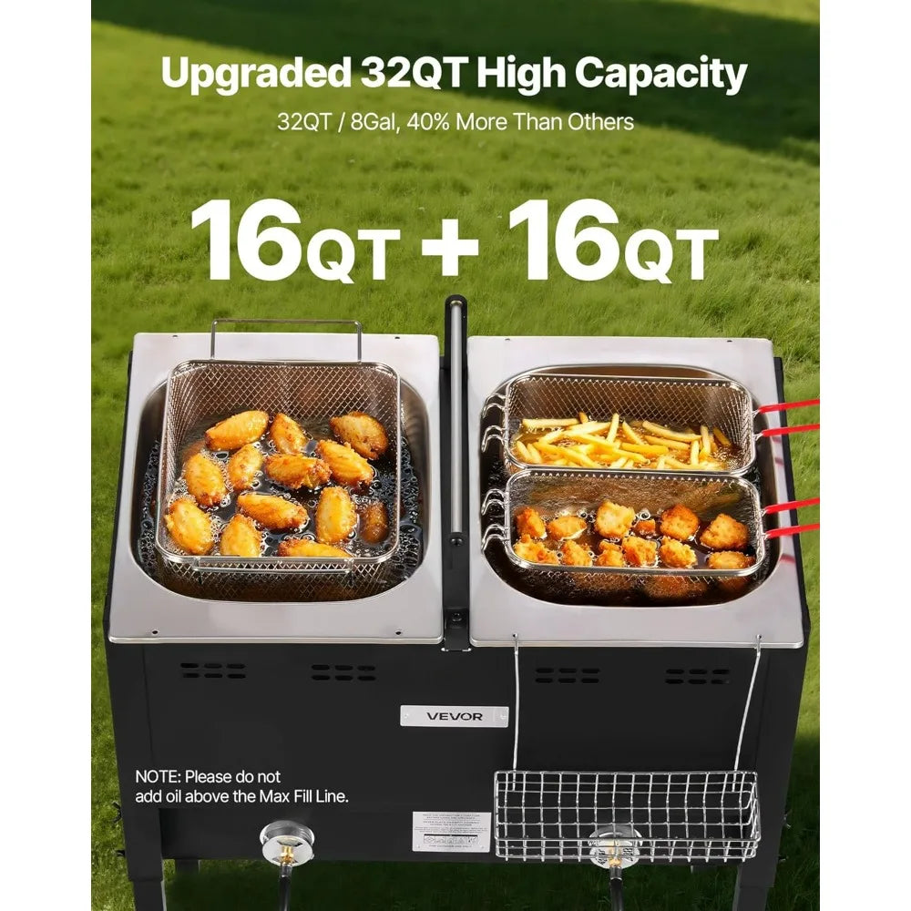 Cook large outdoor batches with the VEVOR Dual Tank Outdoor Propane Deep Fryer, delivering party-ready, crisp favorites with speed and consistency.